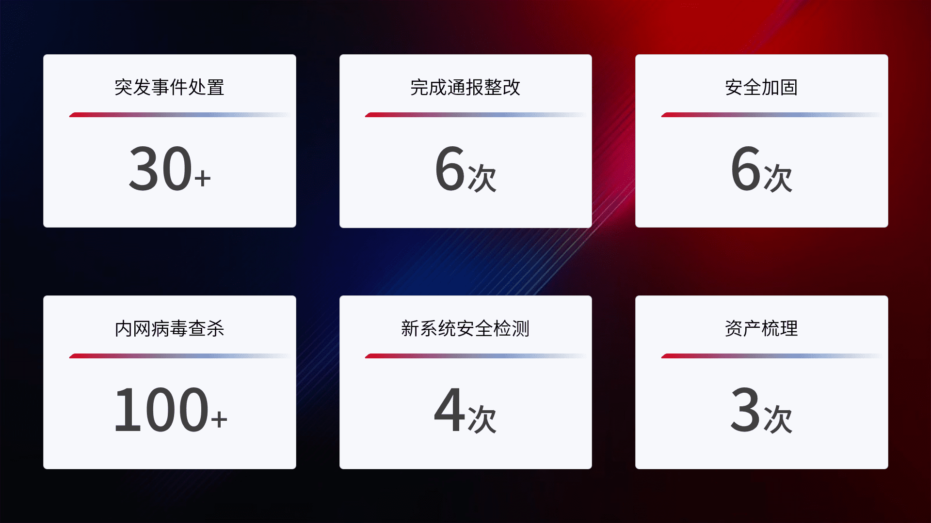 安全水平提升与事件响应:派驻经验丰富的安全工程师,,,提升医院网络安全防护的整体水平;建立突发网络安全事件的处置流程,,提高响应速度和处置能力。。